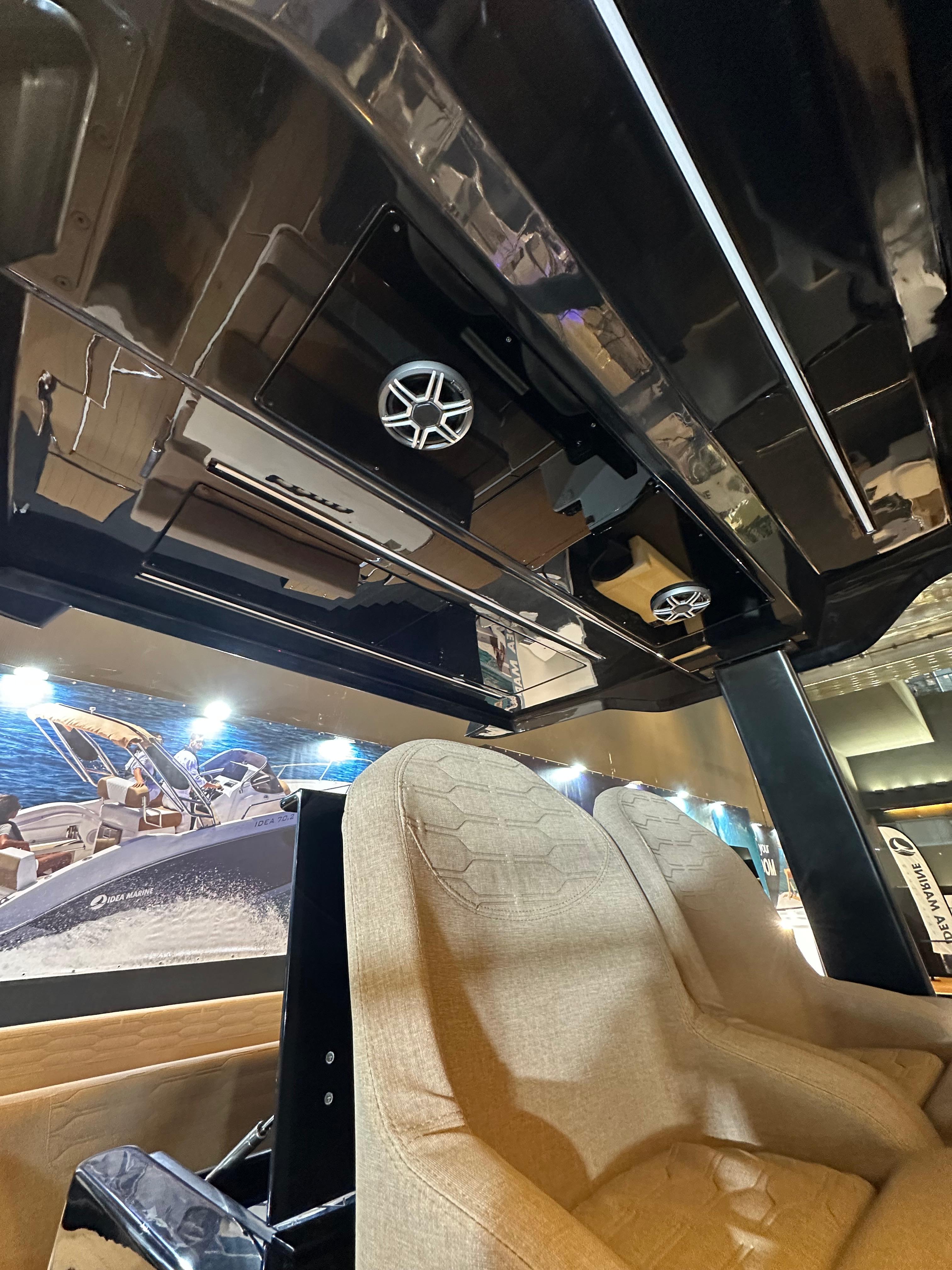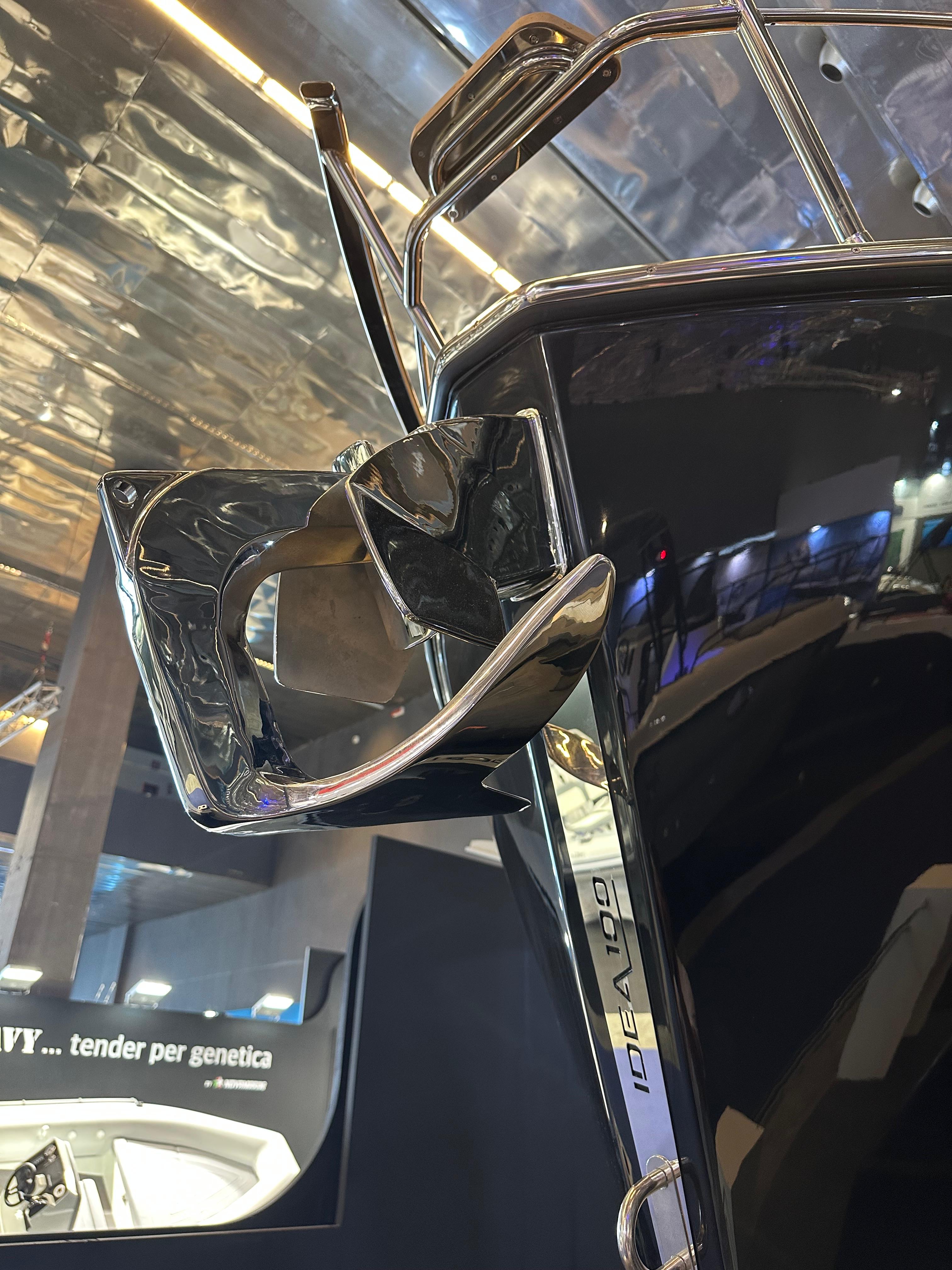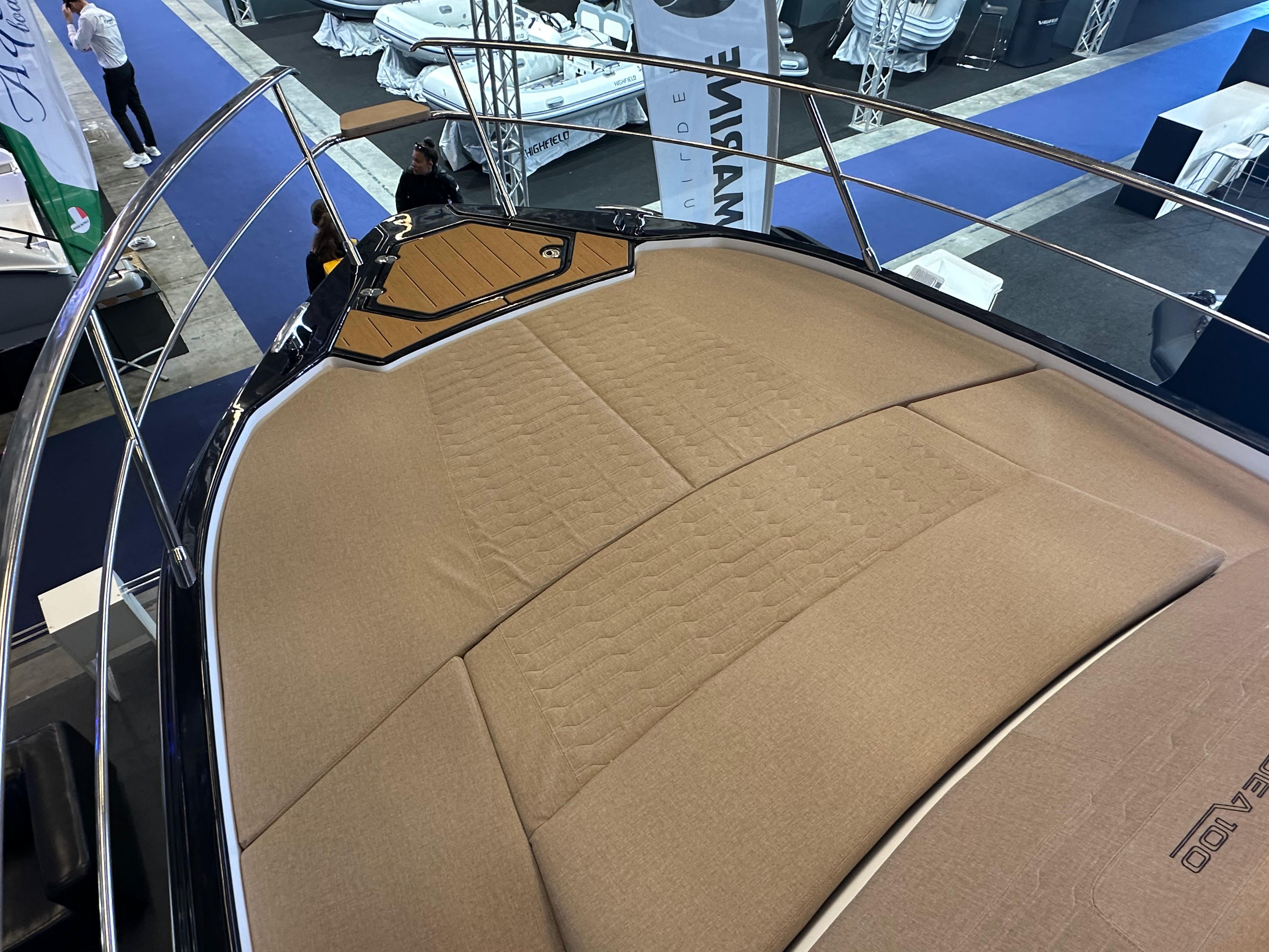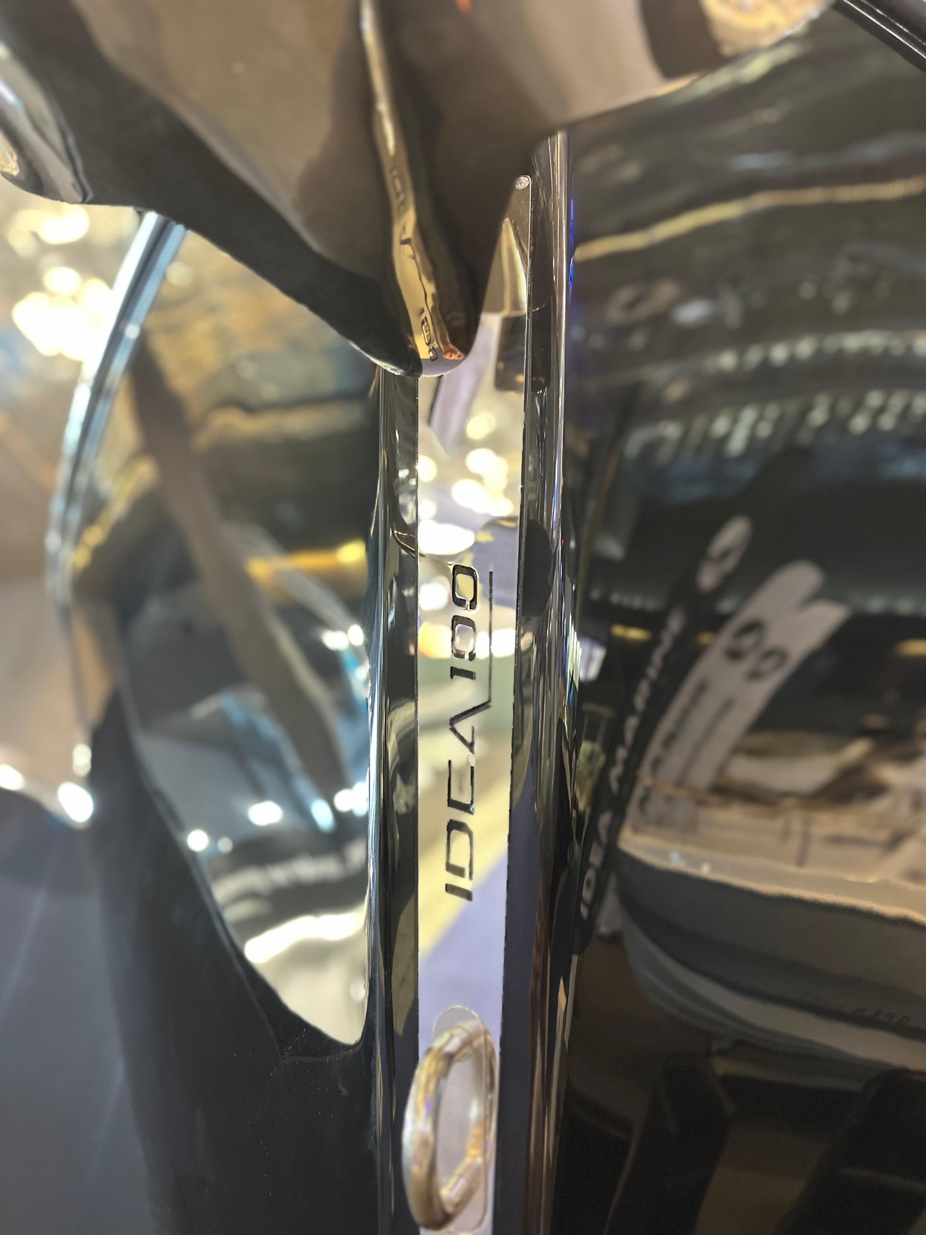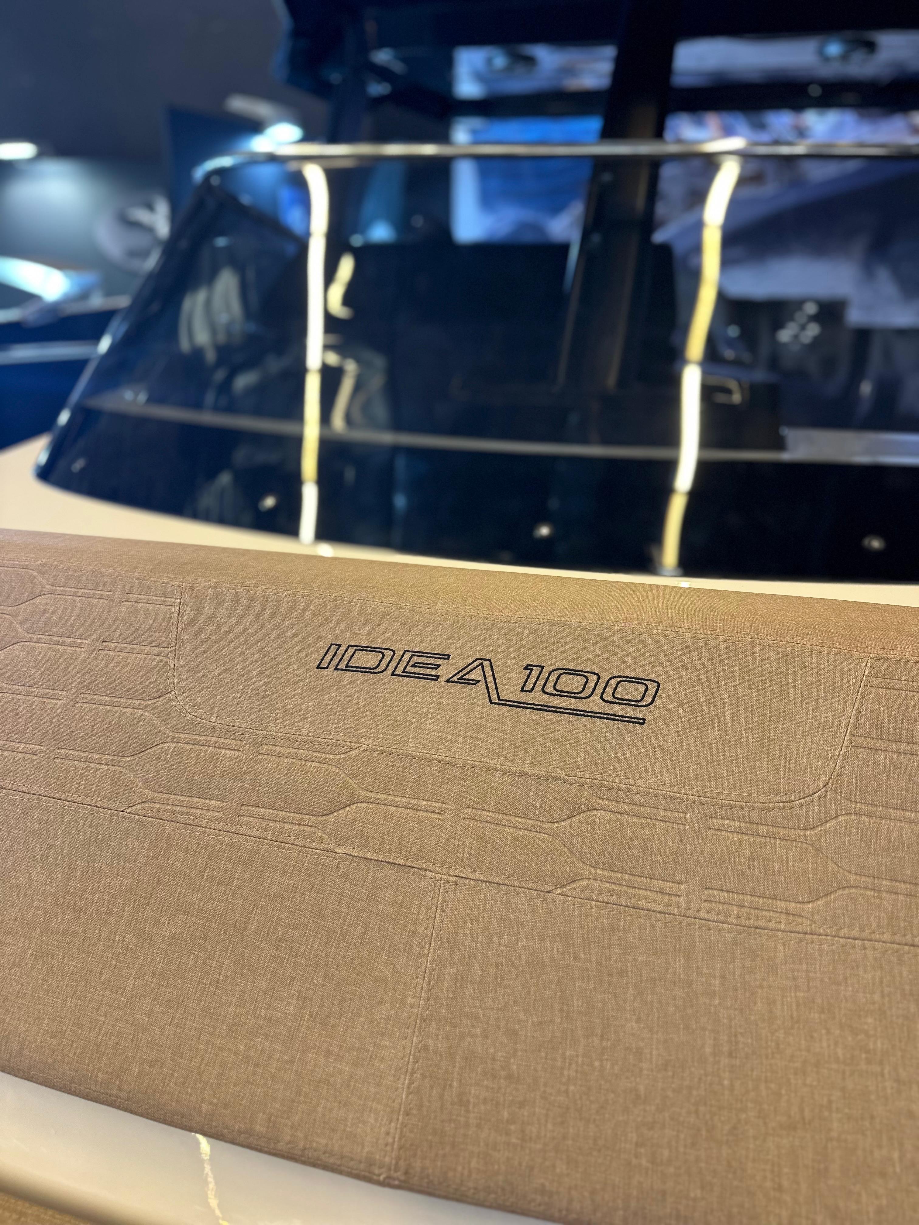 Ampie finestrature che verso prua si interrompono sul cambio di sezione caratteristico dello scafo, dritto di prua quasi verticale, code imponenti e tettino sfilato rendono la 100 un mix perfetto di eleganza e sportività.