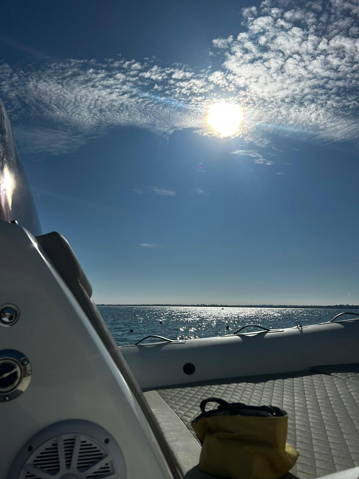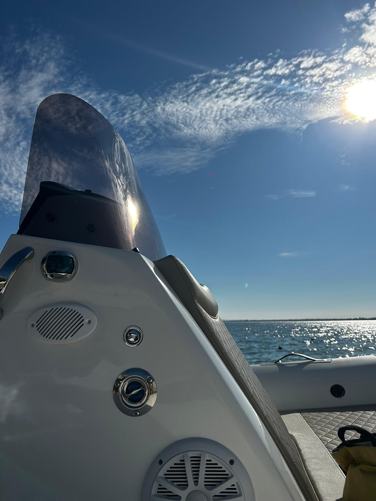 Ampi prendisole, console centrale con seduta, comodi spazi a bordo, plancette di poppa con scaletta per un facile accesso all’acqua. Condizioni: pari al nuovo, ha navigato esclusivamente in acqua dolce.