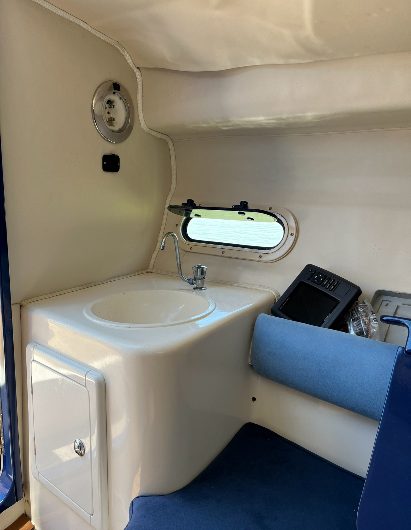 Frigorifero, bagno nautico separato, impianto audio, sistema di navigazione cartografico con ecoscandaglio, VHF, tendalino bimini e tendalino completo tipo camper, salpancora elettrico, dotazion sicurezza (8 persone).