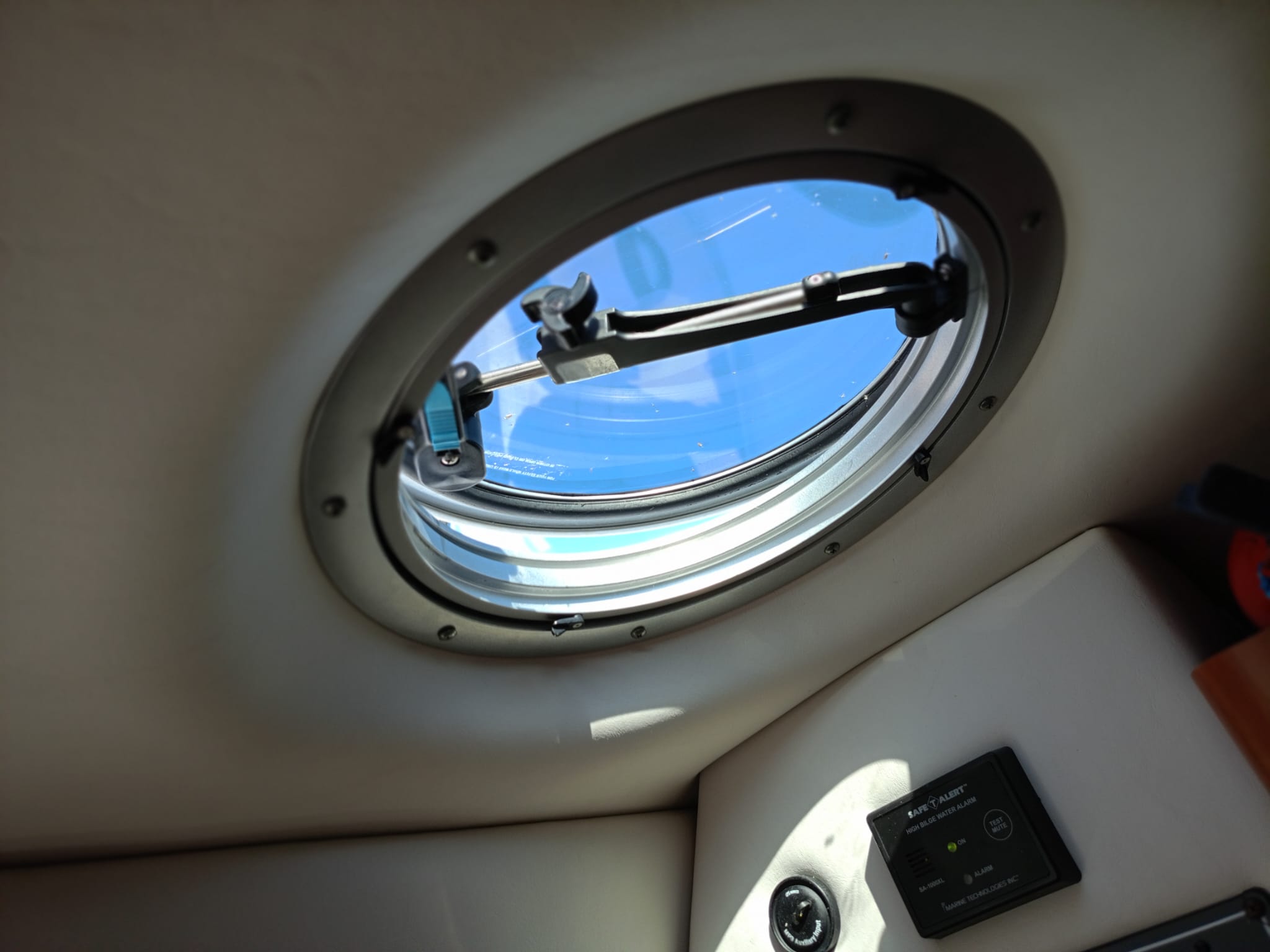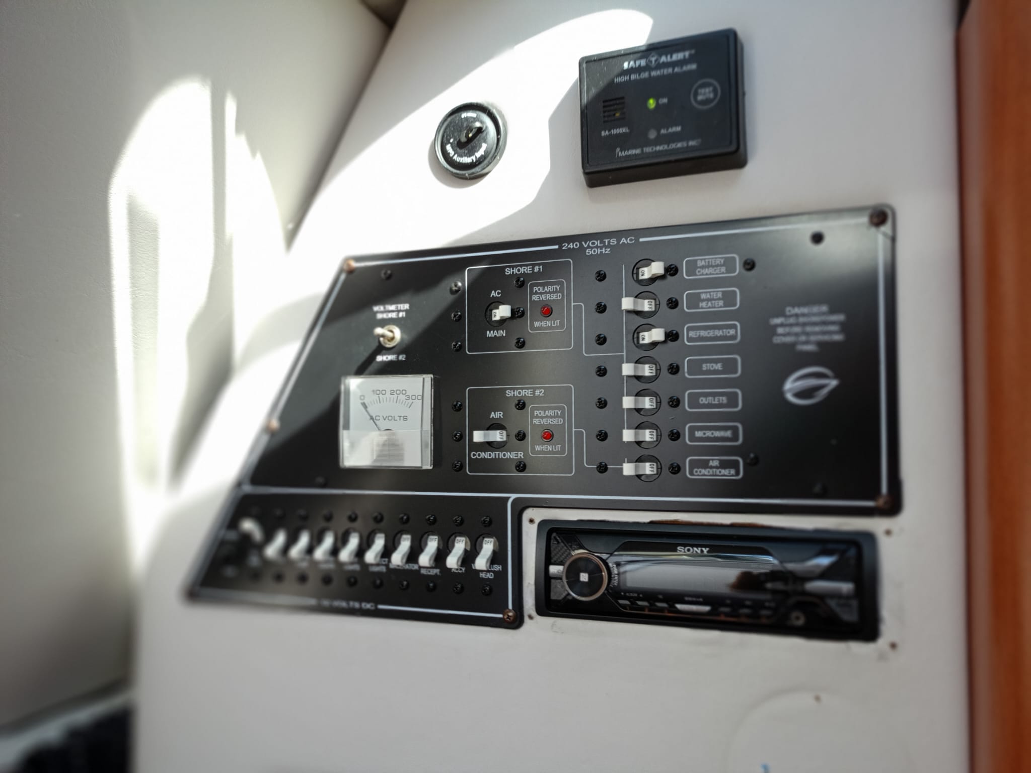 hull cover, steel awning, large aft sundeck, marine toilet, radio/stereo, microwave, refrigerator, cockpit cover and synthetic teak platform.