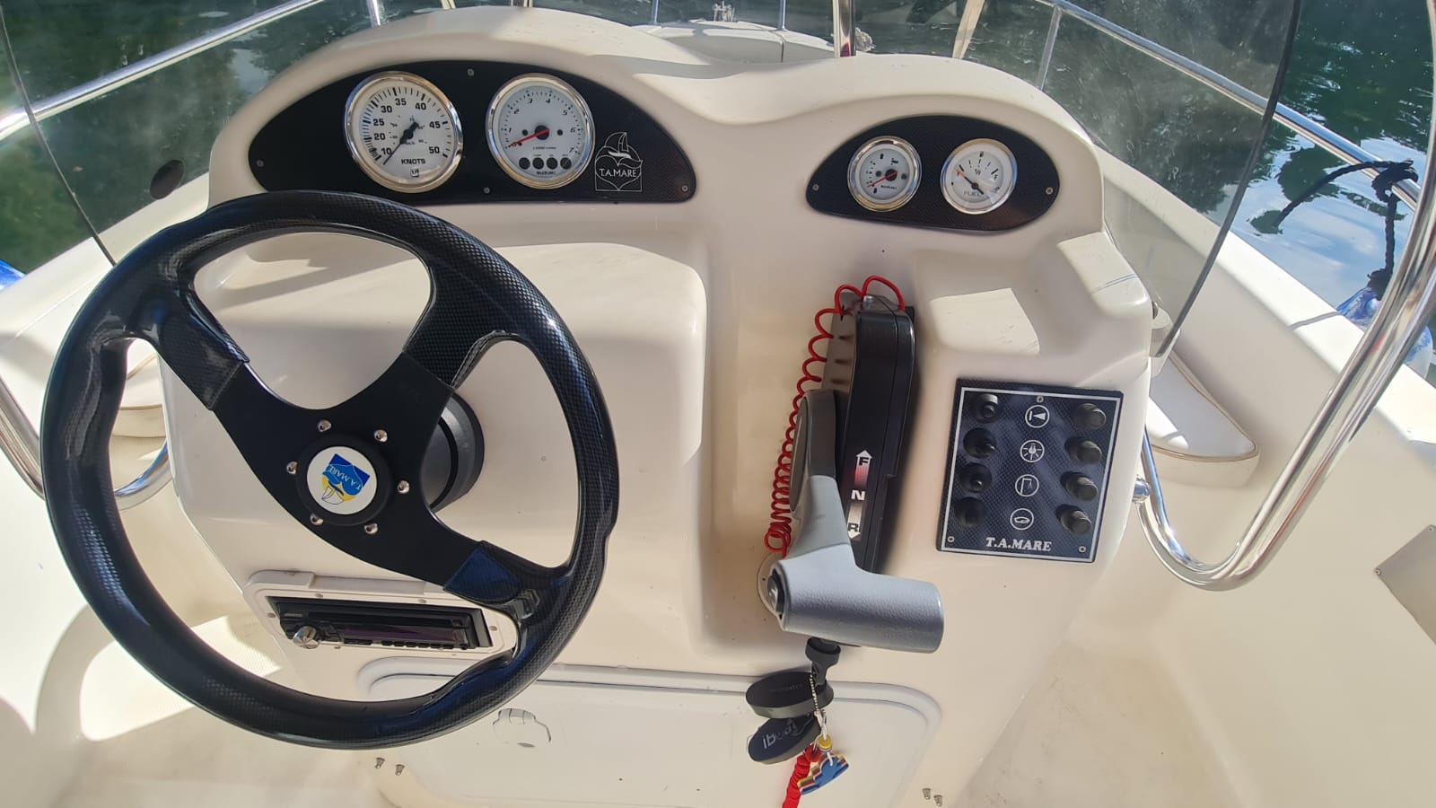 It is a small open boat 4.65 meters long, in good condition, designed for those who want to move on the sea (0 on a lake) with lightness and freedom. The hull is moderate V-shaped, which makes it glide quickly and cut the short wave, typical of the coast, well.