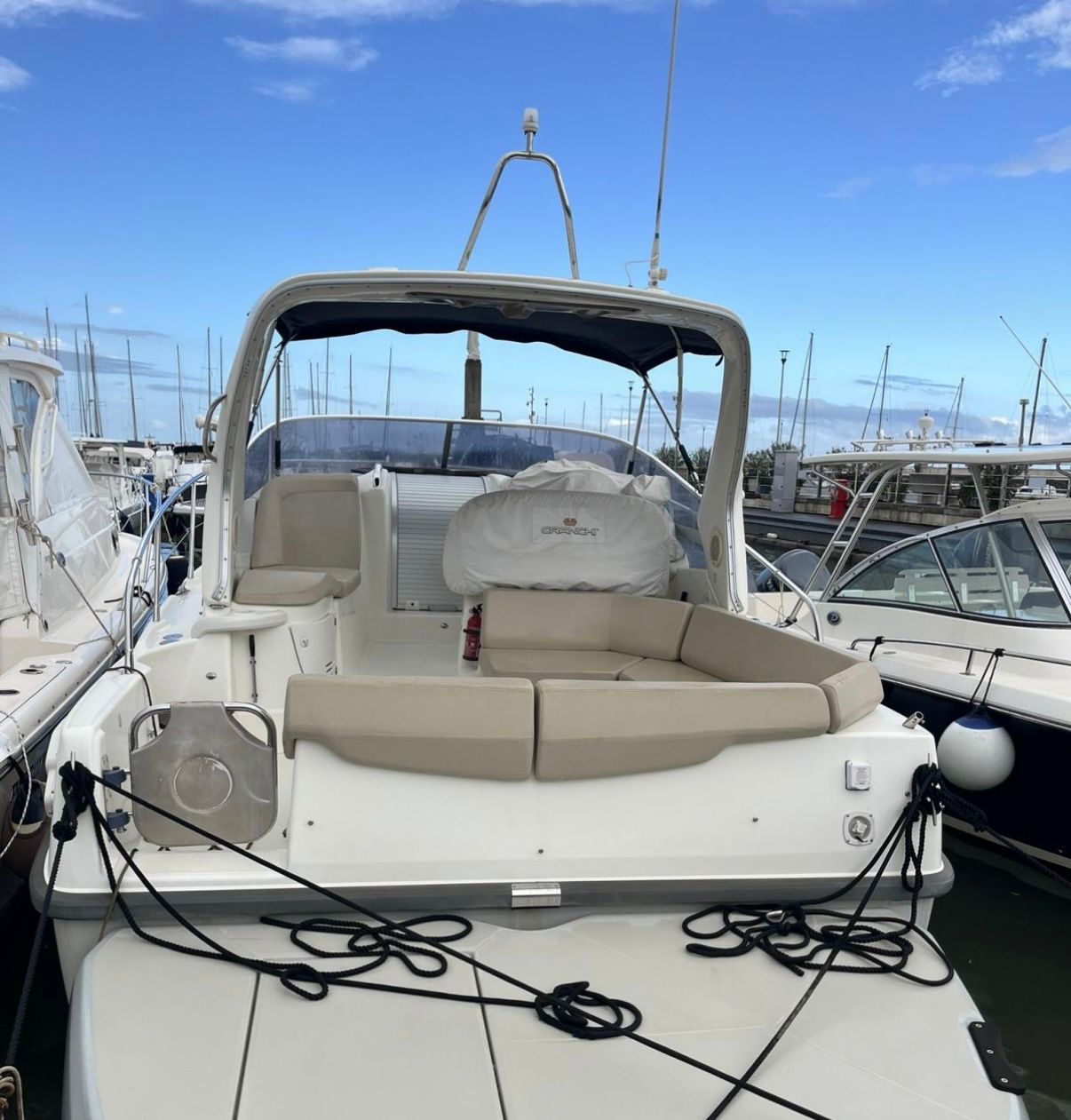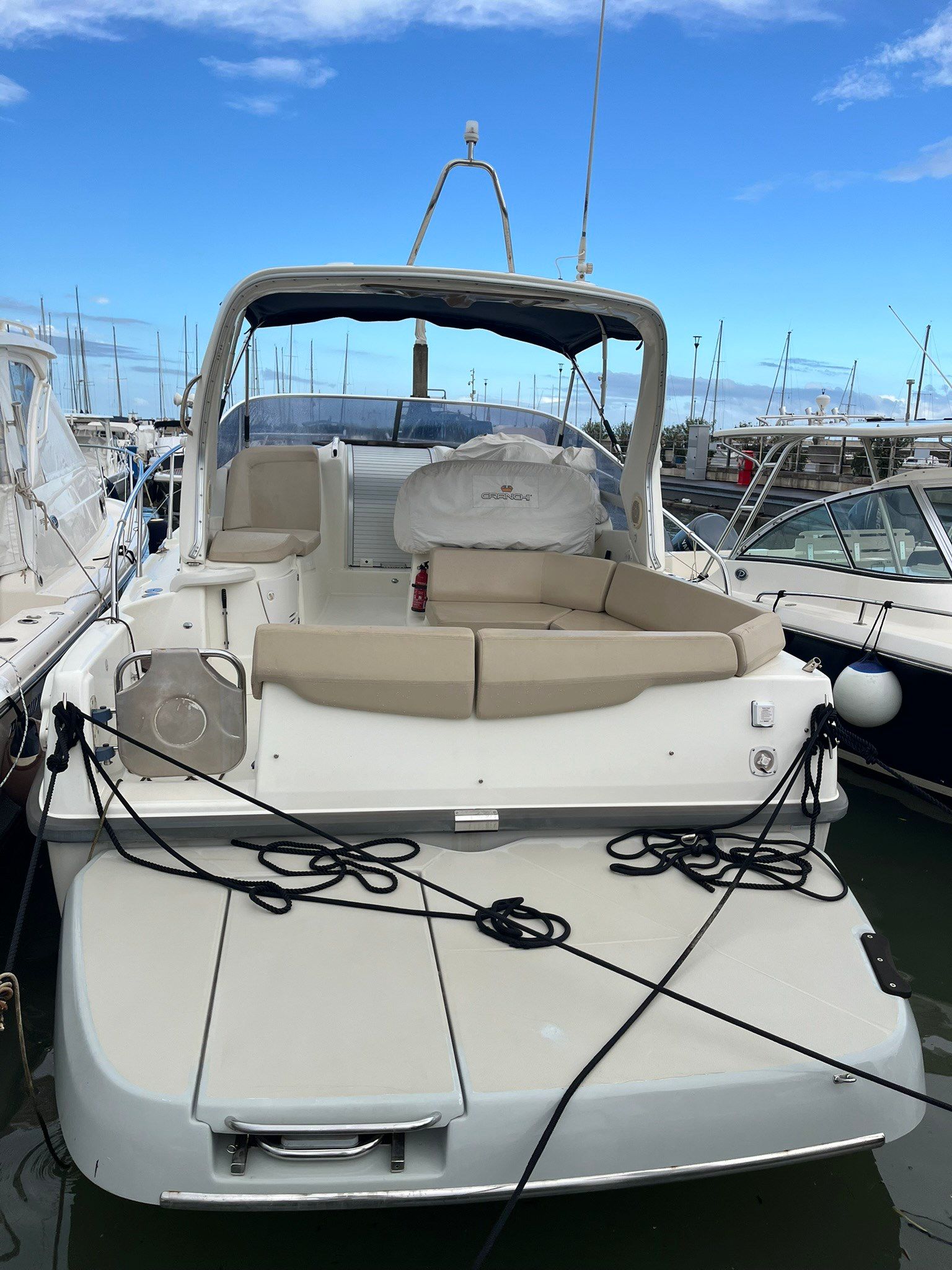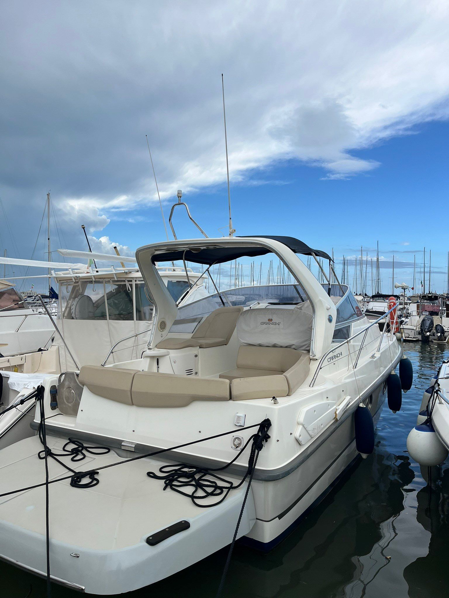 Cranchi Zaffiro 29 (messa in acqua 2012) usata con ben 2 Volvo Penta D3 190Hp, compatta e molto curata, ideale per uscite giornaliere e weekend grazie agli spazi ben sfruttati. A bordo, dinette trasformabile in letto matrimoniale, cucina attrezzata, letto matrimoniale di poppa, cuscineria nuova esterna, bagno separato con doccia, dotazion entro 12 miglia, stereo GPS Raymarine, VHF Raymarine, caricabatterie e scaletta bagno. Barca pratica, elegante e facile da gestire, perfetta per vivere il lago/mare in totale relax.