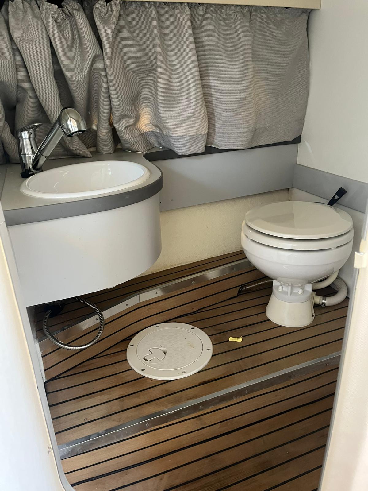Tre batterie nuove 2025, eliche acciaio, caricabatterie, inverter, wc elettrico, frigo, gps, eco, cappottina camper cuscinerie.