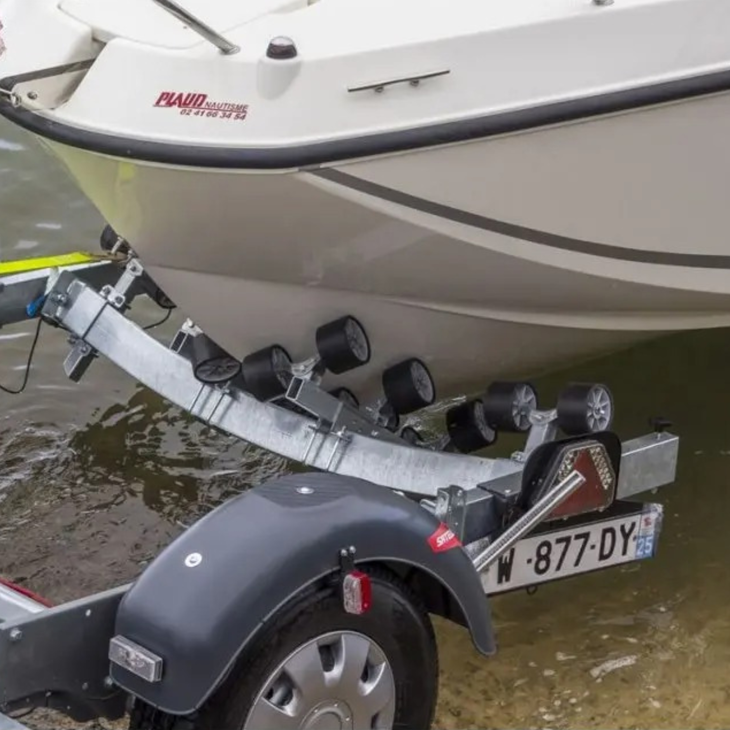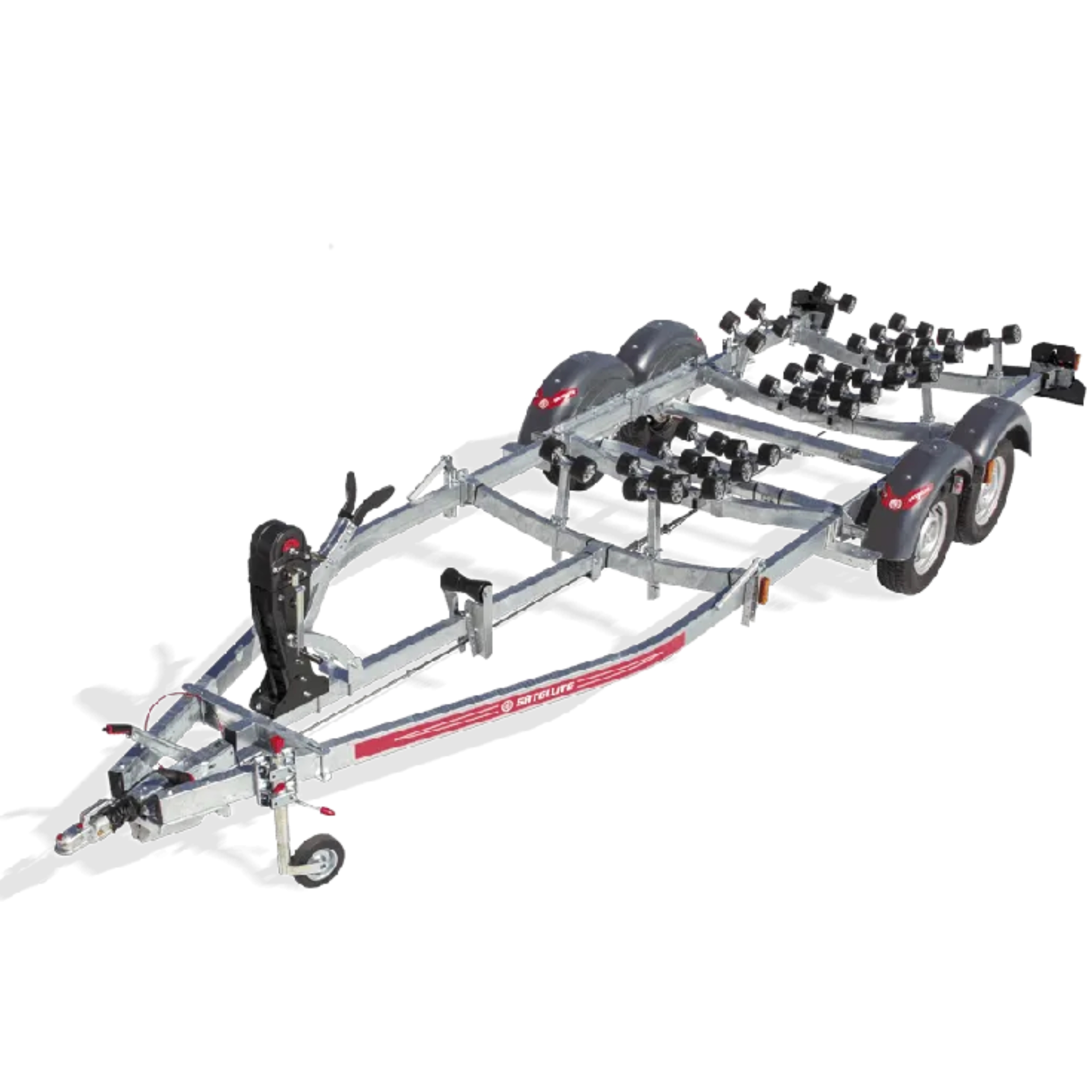 Satellite MX202, un carrello monoasse multi-rulli realizzato su misura per la tua barca: una soluzione affidabile e pratica per trasporto, alaggio e rimessaggio.