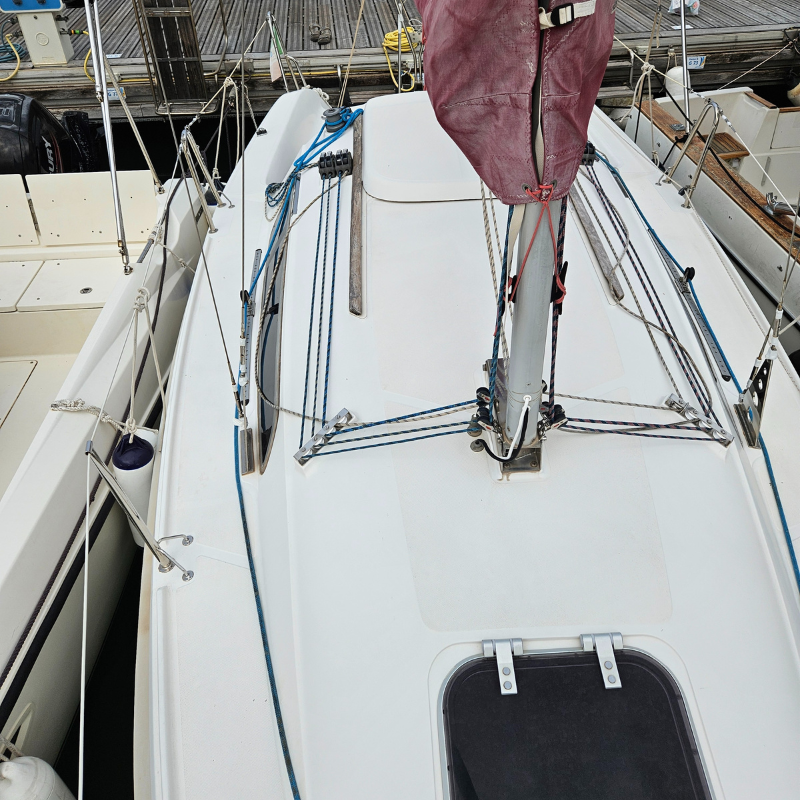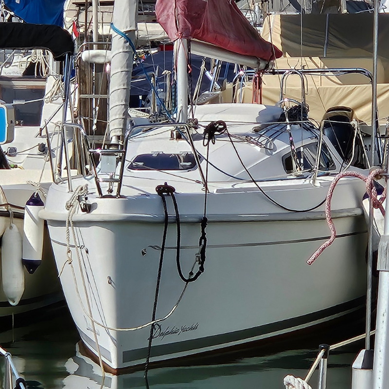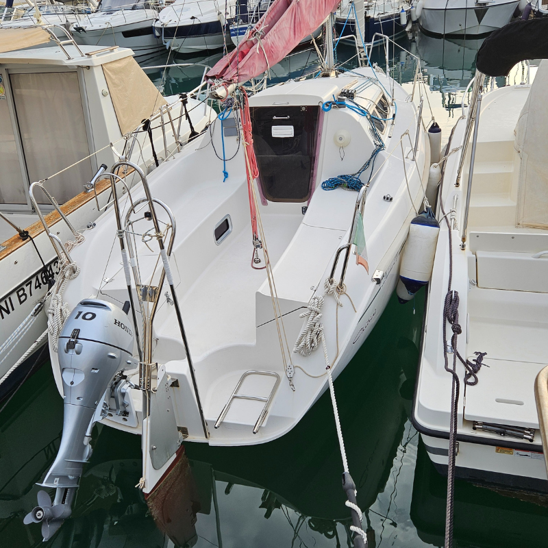 Delphia 24, barca a vela usata del 2007 a deriva fissa, in ottime condizioni, completa e ben accessoriata, ideale per chi cerca una barca a vela cabinata affidabile per crociere costiere e uscite giornaliere. Barca di prima mano, curata con attenzione e pronta a navigare, con deriva fissa e assetto stabile. Motorizzata Honda 10 cv del 2019 con poche ore e accensione elettrica. Gli interni offrono 4 cuccette e una dotazione comfort pensata per vivere la barca anche in piccoli soggiorni: angolo cottura con 2 fuochi e lavandino (mai usati), bagno separato con pompa manuale (mai usato), doccetta in pozzetto e tendalino parasole su misura.