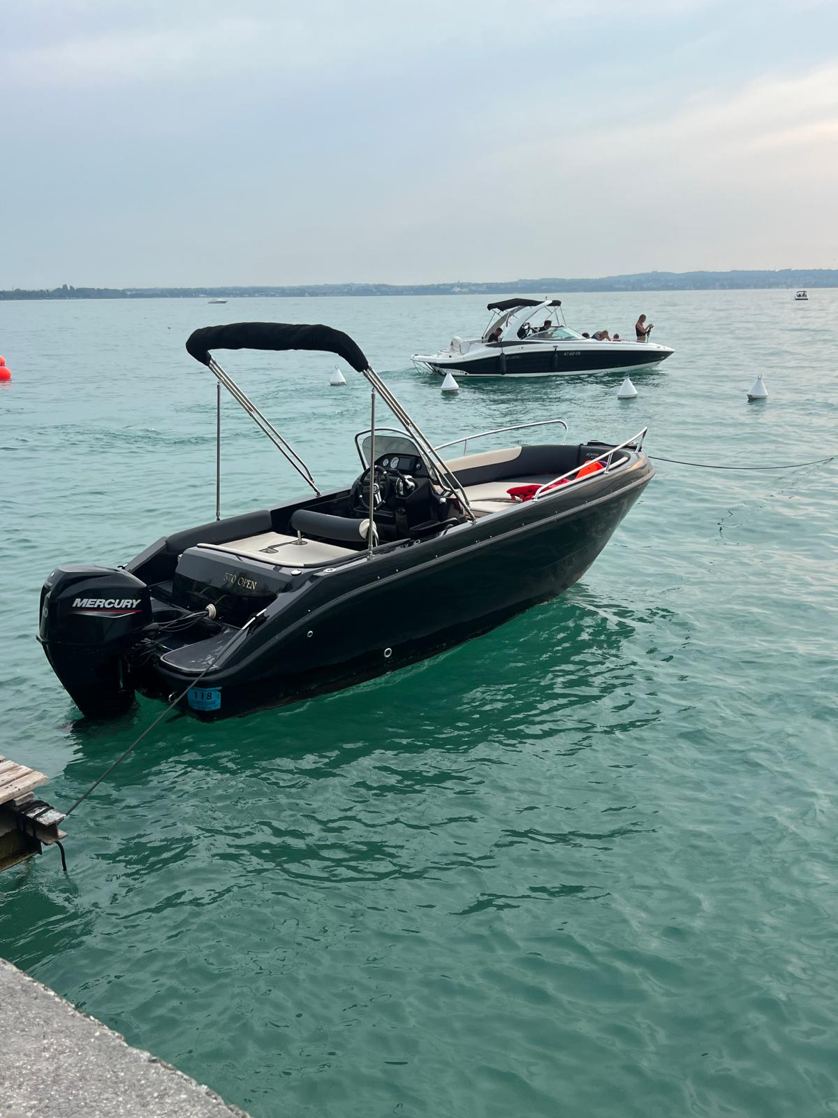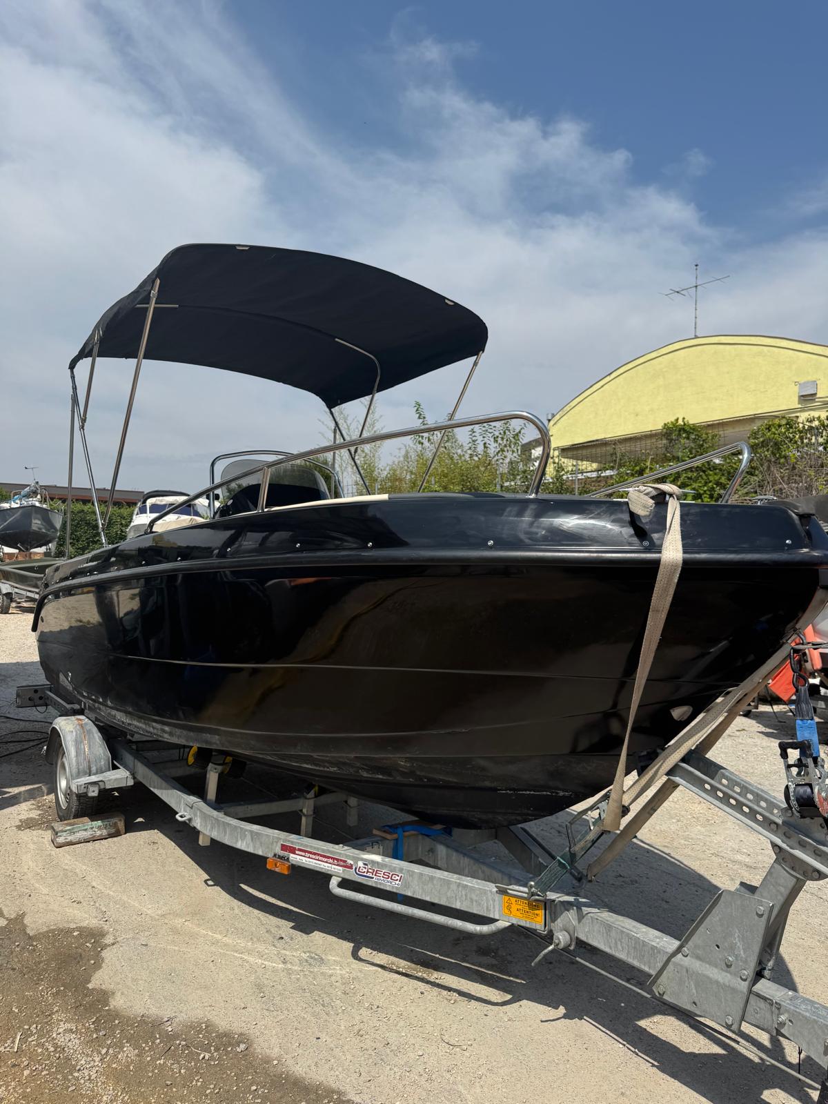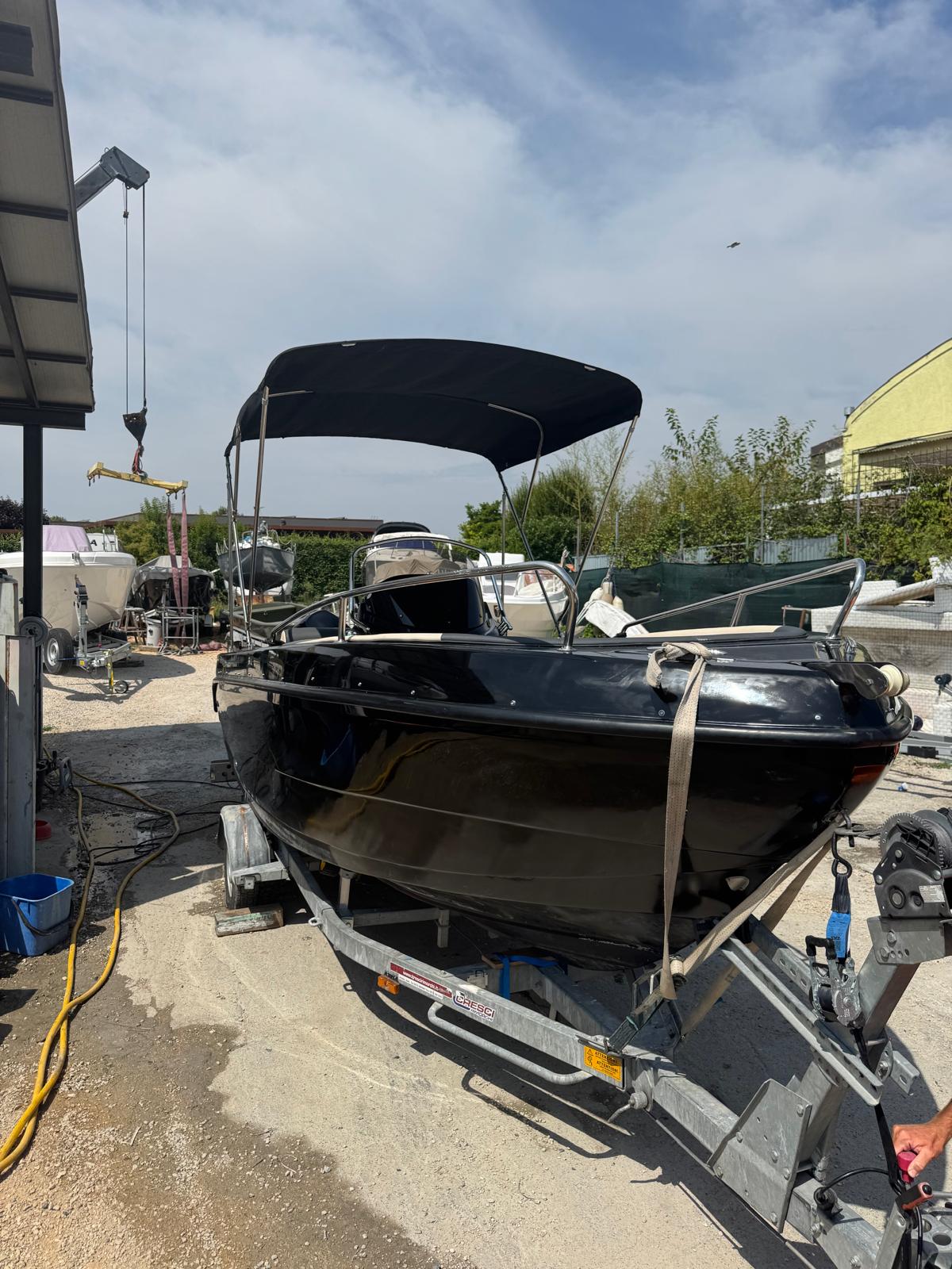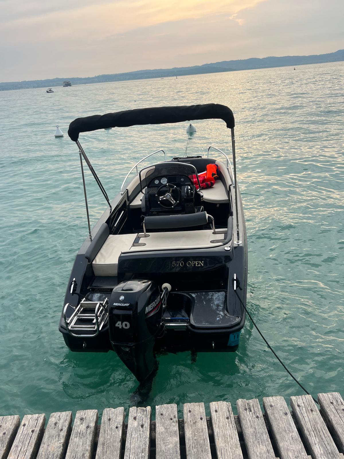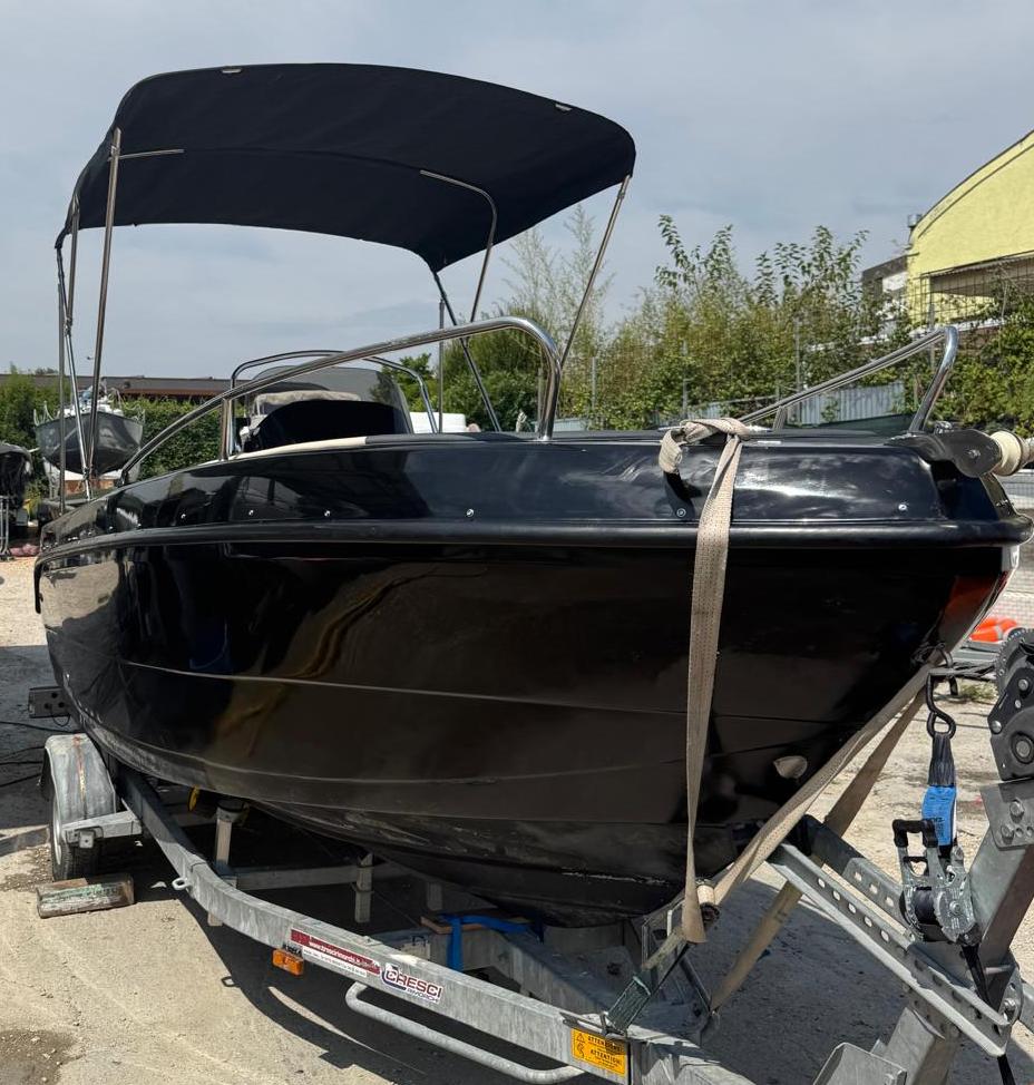 AS Marine 570 Full Black usata (2021) in ottime condizioni, abbinata a motore Mercury F40 ELPT EFI 40 cv con centralina ECM (potenza omologata 40/60 cv). Barca open usata solo in acqua dolce, rimessata in secca durante l’inverno, in vendita per cambio categoria. Ampio prendisole di prua, seduta fronte console, seduta di guida con schienale regolabile per formare un'altro prendisole di poppa.